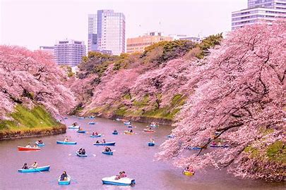 Row a boat through the serene Chidorigafuchi moat during cherry blossom season for a picturesque