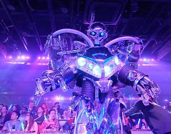 Lighting Up the Night: An awe-inspiring display of a giant robot dazzling the audience with